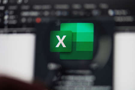 New york, USA - july 26, 2019: About microsoft office excel software on computer macro close up view in pixel screen