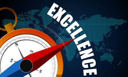 Magnetic compass with needle pointing Excellence word, 3d rendering
