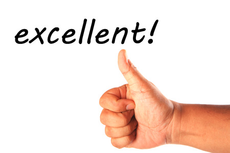 Customer Experience Concept, Best Excellent Services Rating for Satisfaction present by Thumb of Client with Excellent word and Smiley Face icon