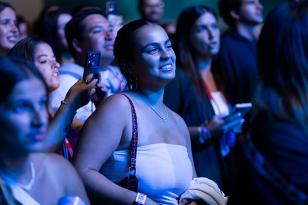 FARO, PORTUGAL: 5th SEPTEMBER, 2024 - Audience watch music artist in the Music Festival F, a big festival on the city of Faro, Portugal