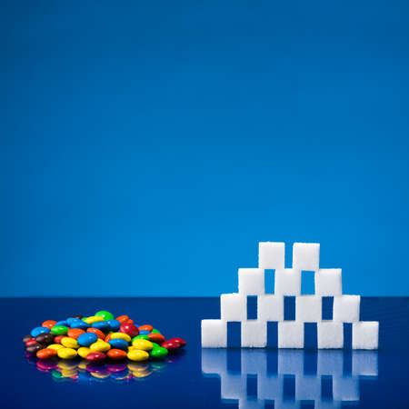 sugar cubes. unhealthy living with white crystal sugar cube