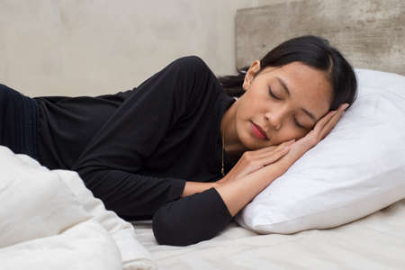 Asian woman sleeping lie on the stomach on bedroom,Good dream,Daydream,Happy time