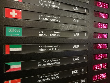 currency exchange rate on digital LED display board