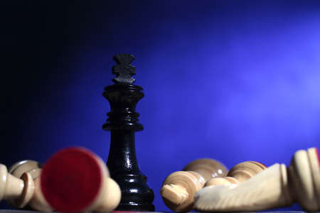 Business and politics concept. Chess, the red king defeated the white pawns.