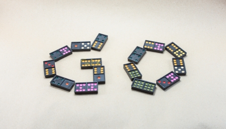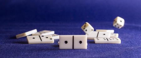 dominoes on the background of the fabric is very popular all over the world board game, its purpose to the hands of the player there is not one dice