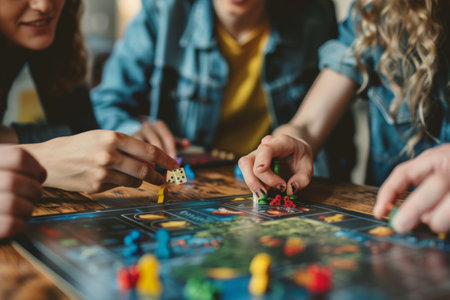 Colorful game pieces stand out on a vivid board, inviting players of all ages to engage in competitive spirit and strategic thinking during game night.