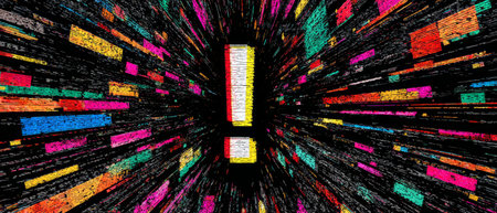 Digital exclamation mark warning with glitch effects. Generative AI
