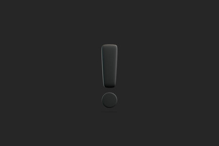 Black exclamation mark on a dark background, symbolizing alert, attention, or warning in a sleek design. 3D render illustration