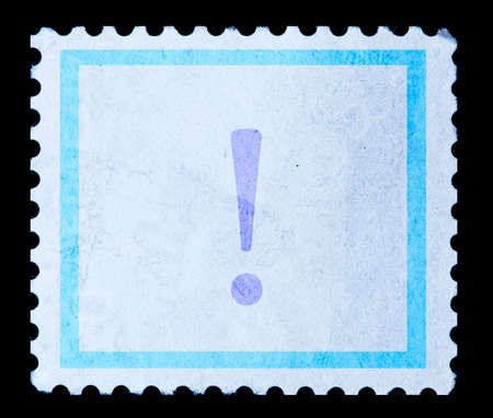 White paper card featuring an embossed exclamation mark symbol standing on a textured blue surface, conveying concepts of warning, danger, notice, and important alert