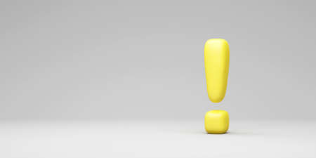 White exclamation mark on yellow background, 3d rendering. Computer digital drawing.