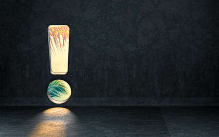 Exclamation icon showing inside of interior with sunray shiny realistic background 3d render