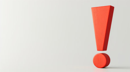 A 3D rendering displays a red exclamation mark inside a white rounded square against a solid red backdrop. The design features soft lighting, smooth textures, and a minimalist style. This visual could be used for various projects, including informational graphics, marketing materials, or website design elements.