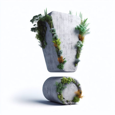 Exclamation shape 3D Lettering That Blends Concrete With Nature. AI generated illustration