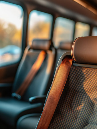 Focus on well designed seat belts in a bus interior, showing comfort and safety features for passengers during a journey.