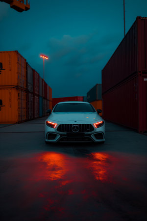 bus depot at night, with the lights of the buses illuminating the scene, created with generative ai