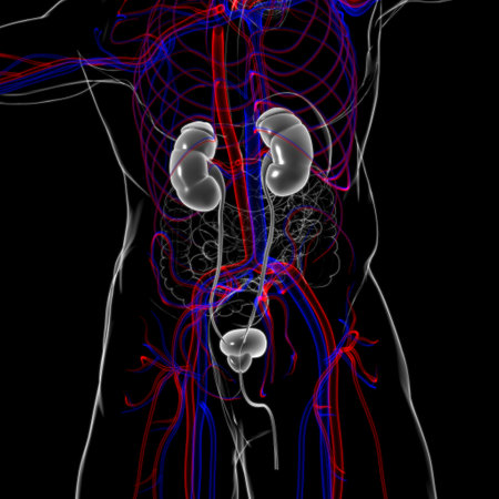 Human Urinary System Kidneys with Bladder Anatomy For Medical Concept 3D Illustration
