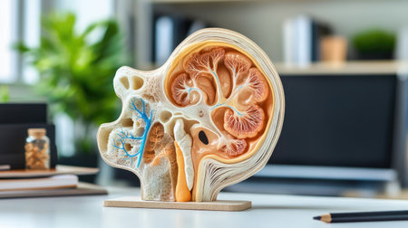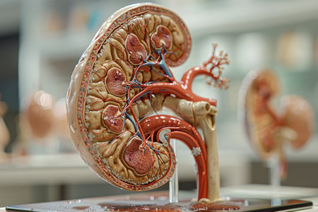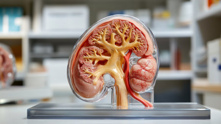Detailed kidney model showing internal structures and functions for educational purposes