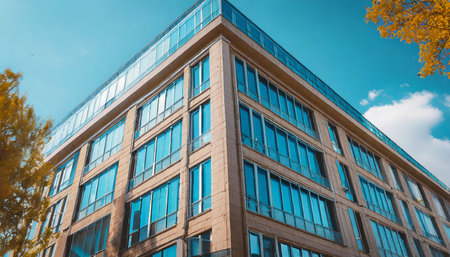berlin office building with a retro vibe and big blue windows modern minimalist building against blue sky