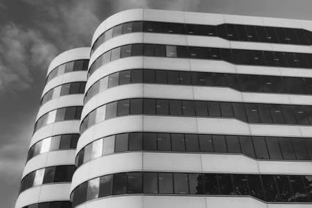 Abstract modern architecture with high contrast black and white tone. Architecture of geometry at glass window - monochrome.