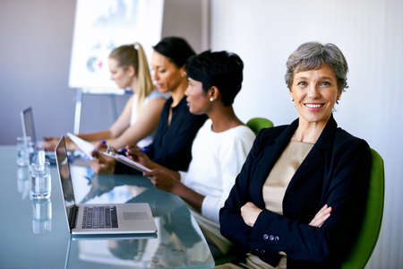 My seat at this table is guaranteed. Cropped portrait of an attractive young businesswoman attending a meeting in the boardroom with her colleagues in the background.