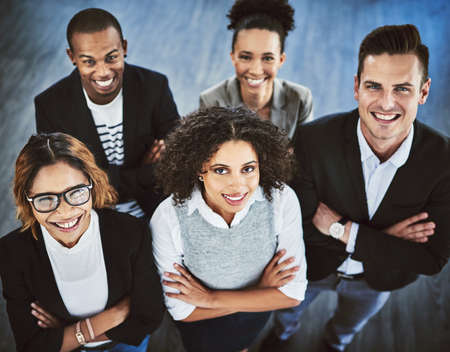 The coordination of our efforts make us a great team. High angle shot of a group of businesspeople standing together in an office.
