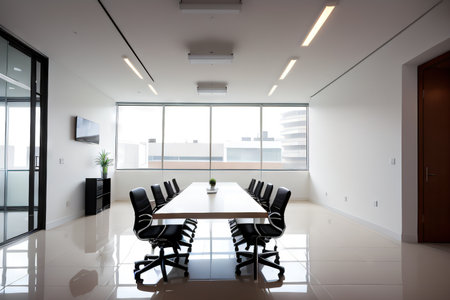 Illustration of empty meeting room in office setting, for brainstorming and collaboration. Perfect for business concept presentations or design projects.