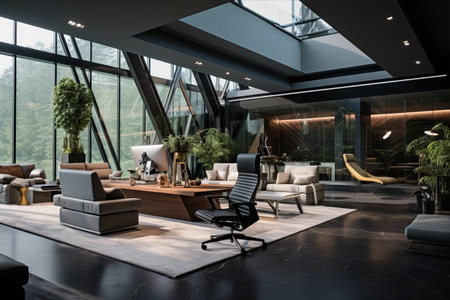 Inspiring office interior design Transitional style Corporate Office with Open Space Design featuring Versatile elegance architecture. Generative AI AIG 31.