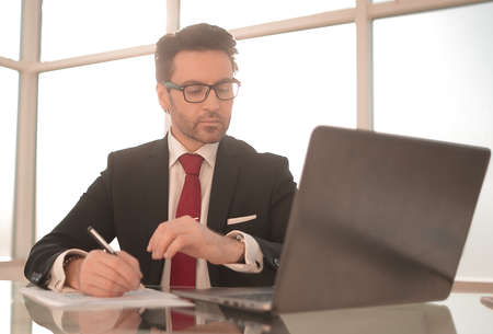 close up.businessman sitting at his Desk