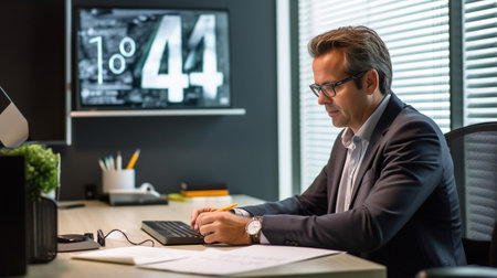Analyzing reports and graphs, the businessman demonstrates astute financial acumen.