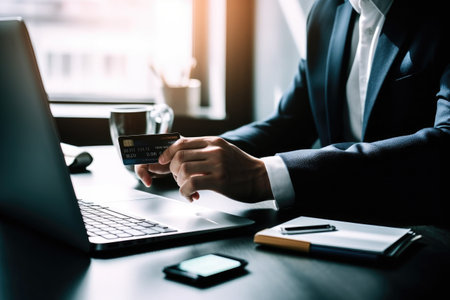shot of an unrecognizable entrepreneur using his credit card to pay for something online