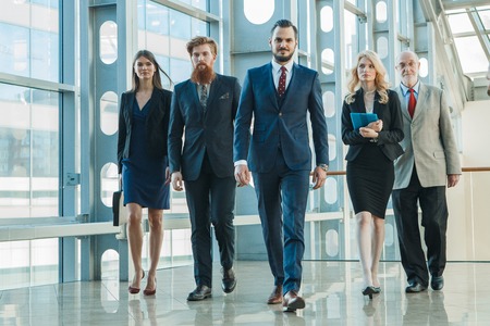 Business team standing in front of the meeting room. Successful company with happy in workers.