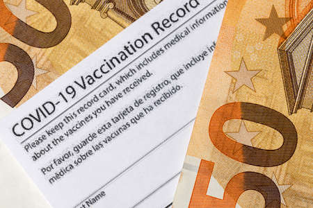 Bamberg, Germany - 14-05.2021. Hand with vaccination pass and ffp2 mask against a black background