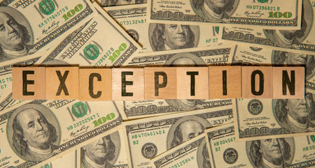 Wooden blocks with EXCEPTION text of concept, pens, notebooks, and books.