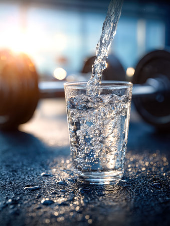 a wet dumbbell with water splashes, conveying intense workout, strength training, and an active lifestyle. This image embodies fitness, power, and determination.