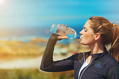 Hydrate for a great workout. Shot of a sporty young woman drinking water outdoors.