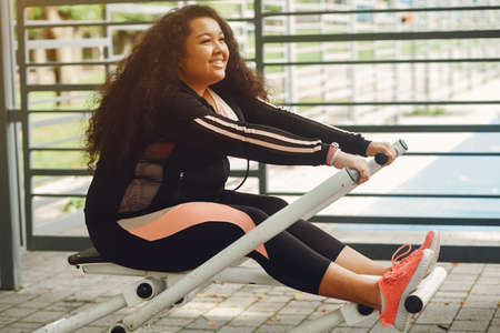 Curvy Afro woman doing workout exercises session - Young African female having fun training outdoor - Sporty people lifestyle concept