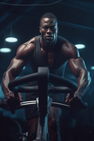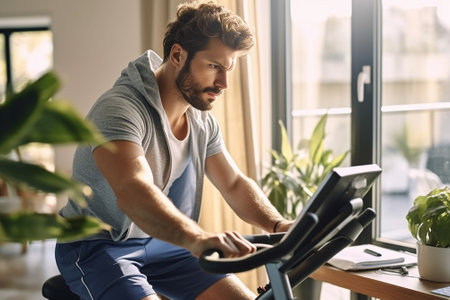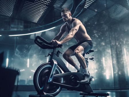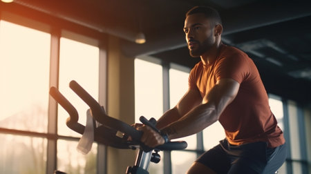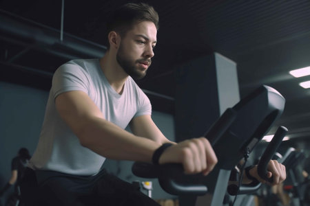 man bicycle cardio exercise bike training equipment exercising gym physical lifestyle fit. Generative AI.