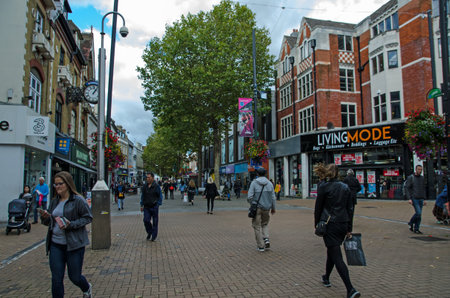 Croydon, UK - October 2, 2019: Shoppers walking on the busy pedestrianised street of North End in the middle of the city on a clear autumn day.