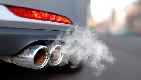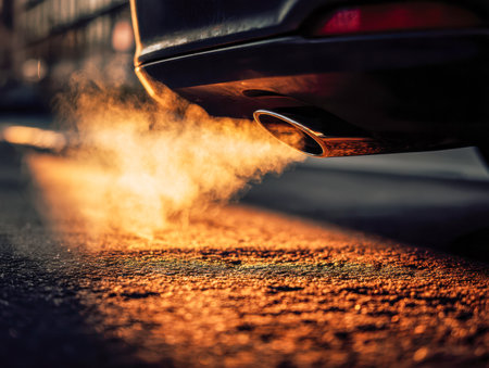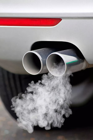 Car Exhaust Emitting Harmful Fumes Contributing to Urban Pollution and Global Warming Crisis