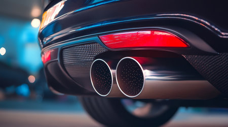 Close Up of a Vibrant Sports Car s Dual Exhaust Pipes Enhancing Road Performance and Style