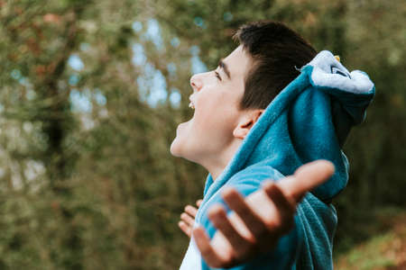 child disguised to outdoor