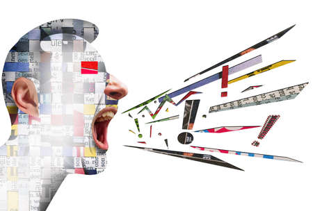 Man with tape over his mouth. The mouth is sealed with warning tape
