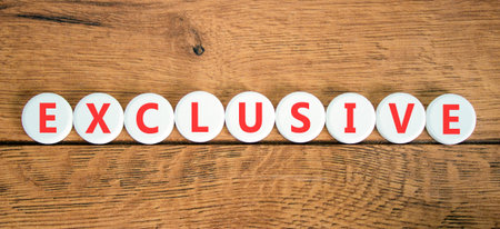 Exclusive symbol. Concept words Exclusive on beautiful white circles. Beautiful wooden background. Business support exclusive concept. Copy space.
