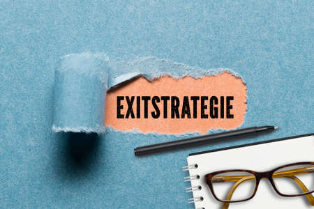 torn paper revealing a document with the German word for EXIT STRATEGY