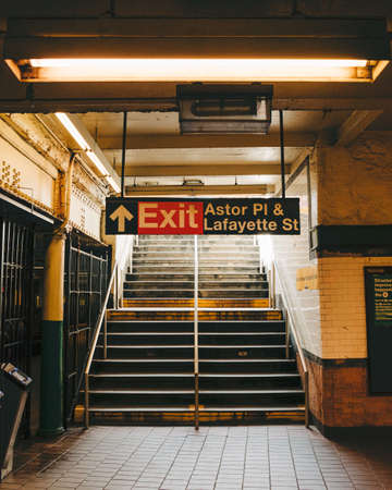 Large EXIT sign at the Canal Street and Broadway stop in the underground subway station New York