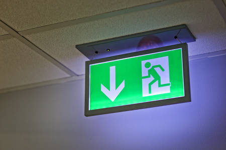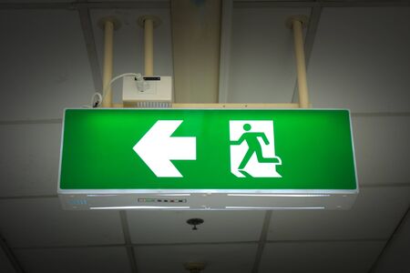 Emergency exit sign in the building