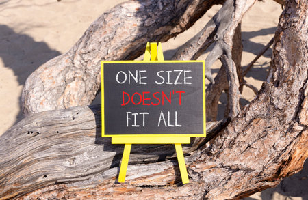 One size does not fit all symbol. Concept words One size does not fit all on beautiful blackboard. Beautiful old tree background. Business one size does not fit all concept. Copy space.