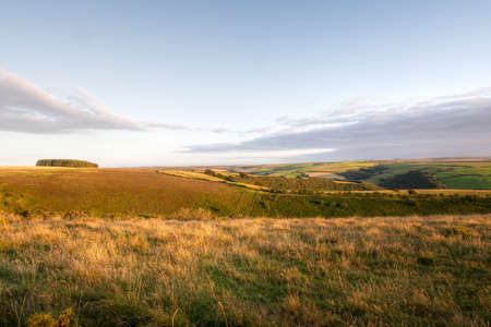 Beautiful golden evening light on open moorland. Exmoor, UK.