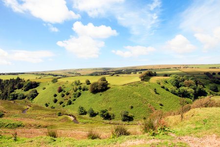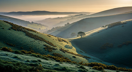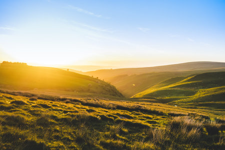 Beautiful sunrise over rolling hills in the Peak District National Park, UK