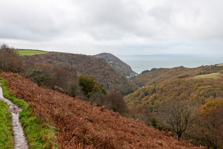 Landscape photo of the autumn colours at Countisbury Hill and Watersmeet Valley in Exmmor National Park